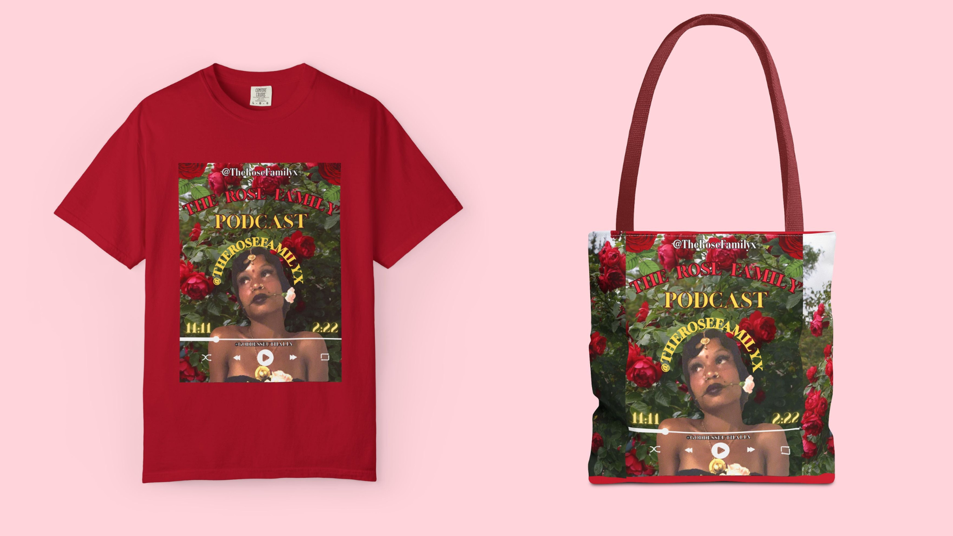 Podcast Rose Tote Bag — Floral Portrait All-Over Print Tote